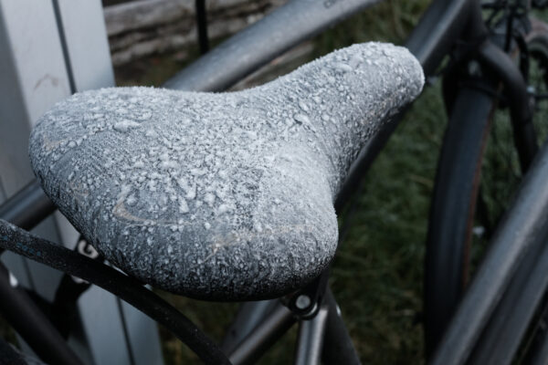 Wie auch immer, als ich das Auto verließ, war ich nicht besonders überrascht: es hatte in der Nacht gefroren. Nachdem ich die Fahrräder auf den Träger gehievt und fixiert hatte, hatte ich ordentlich kalte Hände. Das Aufwickeln des Stromkabels und das Abnehmen der Frontscheiben-Matte dagegen waren weniger schmerzhaft; schließlich muss man hier nicht das blanke Metall anfassen. Kurz nach den ersten Außenarbeiten stieg die Sonne über die Bäume und Hügel und prompt wurde es warm. Ein schöner Tag kündigte sich an.
